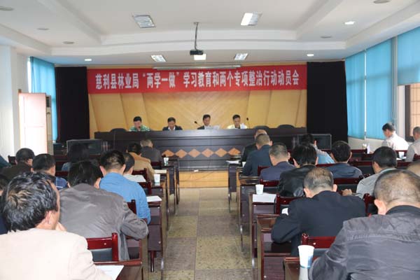 会上,首先组织学习了"学党章党规,学系列讲话,做合格党员"学习教育和"雁过拨毛"式腐败问题和"纠'四风'治陋习"两个专项整治行动等三项工作实施方案,局党委副书记、纪委书记邓柏毅对两个专项整治行动作了具体安排部署,局属各单位当场签订了2016年党风廉政建设责任状。局党委书记、局长许宝庆最后作动员讲话,指出抓好"两学一做"学习教育,是当前的一项重大政治任务,是推动党内教育从"关键少数"向广大党员拓展、从集中性教育向经常性教育延伸的重要举措。抓好"雁过拨毛"式腐败问题和"纠'四风'治陋习"两个专项整治行动,是推动正风反腐向基层延伸,巩固深化作风建设成果,密切党同人民群众血肉联系,推进林业系统党风廉政建设的必然要求,是全局上下目前的重要工作。强调抓好全系统的学习教育和专项整治,对创建生态文明、建设绿色慈利意义重大,要求全体干部职工务必静下心来,凝神聚力,真抓实干,树立讲政治、讲规矩,守纪律、守底线意识,切实把两项工作统筹安排、抓好抓实,确保达到预期目标。